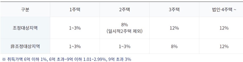 특히 다주택자라면 취득세율이 최대 12%까지 올라갈 수 있기 때문에 투자 수익률에도 큰 영향을 미칩니다.