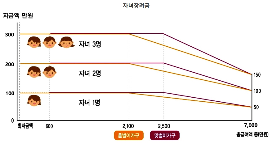 | 최대지급액 | 자녀1인당 100만원(최소 50만원) | ||